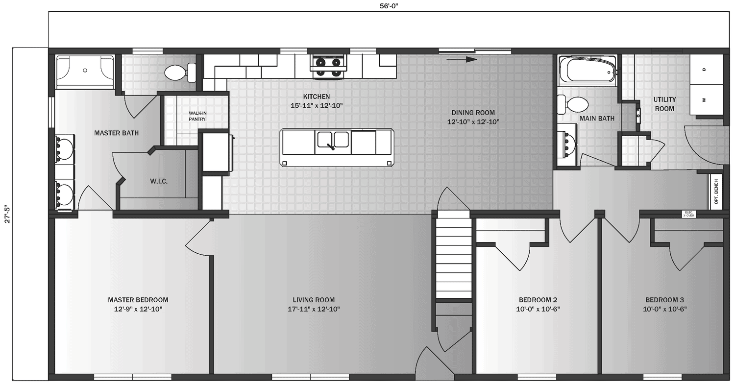 - 5/12 Roof Pitch w/Reverse Gable Dormer
