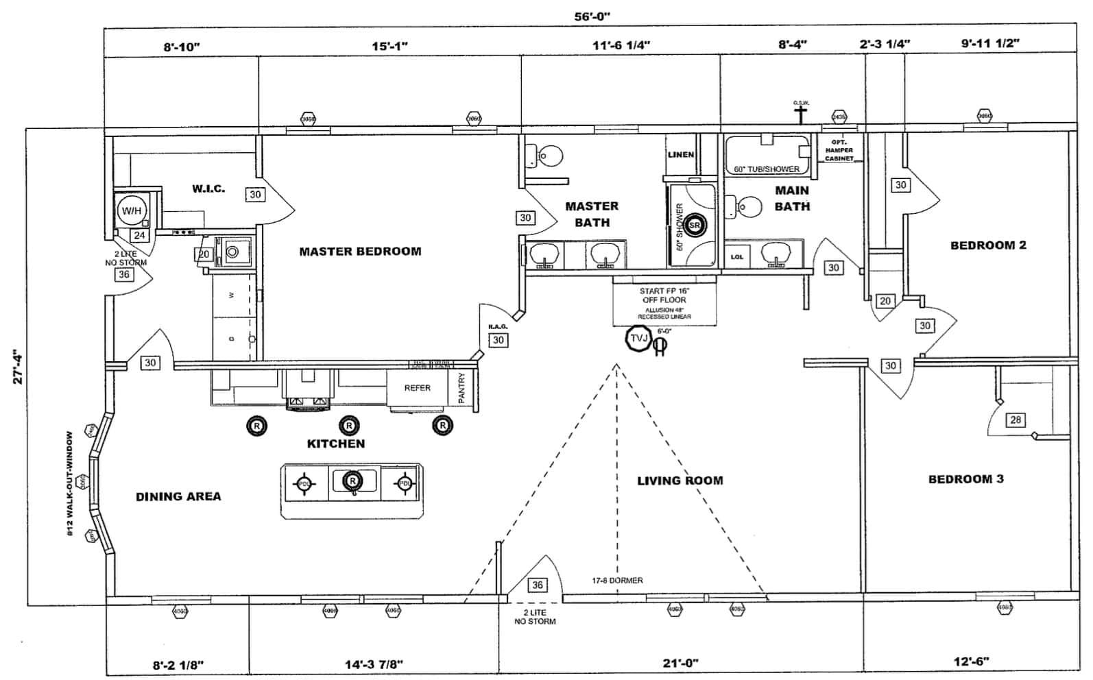 - Main Bath 60" Fiberglass Tub/Shower